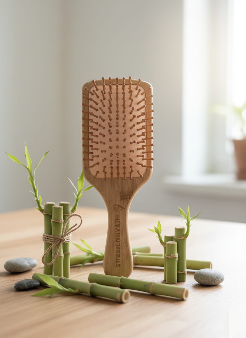 Gentle Detangling and Anti-Static: The smooth, rounded bamboo bristles glide easily through the hair, effectively detangling knots without the snagging, pulling, and breakage often caused by plastic or metal brushes. Since bamboo is a carbon-based material (like your hair), it naturally carries a neutral to negative charge, helping to reduce static electricity and frizz for a smoother, sleeker finish.